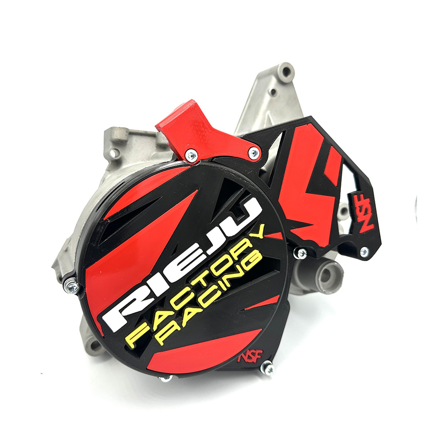 In our "Our Work" category, you’ll find a selection of photos showcasing products we have customized and manufactured for our clients. We are proud to offer a wide variety of 3D-printed parts, such as ignition covers for AM6, Derbi, and MBK Nitro models, chain guides for Rieju MRT, Beta, and Derbi, as well as 100% customizable decorative trophies.