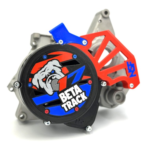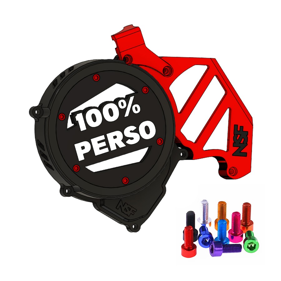 Version V2 of the AM6 3D ignition cover with sprocket cover, compatible with AM6: Rieju MRT 50cc, BETA RR 50cc, Sherco 50cc, Vent Moto 50cc, HM. On this new model, the central cover is removable and you can choose the color of the screws.