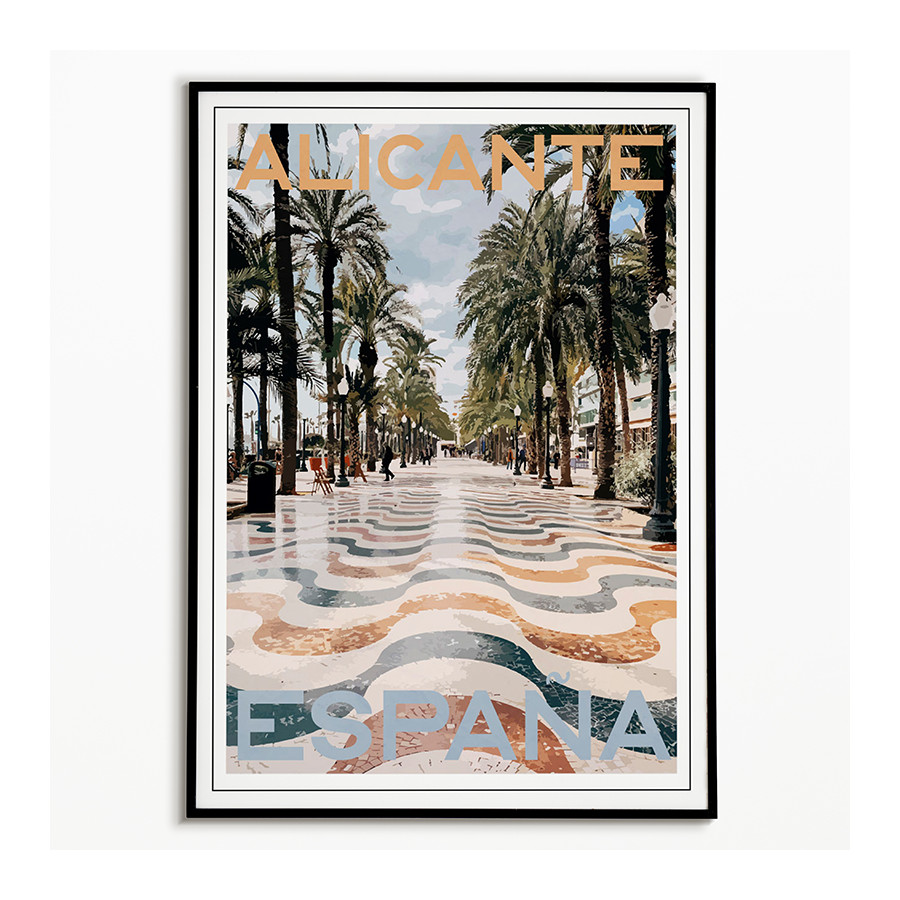 With its colors and design inspired by the Spanish coastline, this frame evokes the bright alleys, Postiguet beach, and the famous fortress of Castillo de Santa Bárbara. An invitation to the sweetness of life in Alicante.
