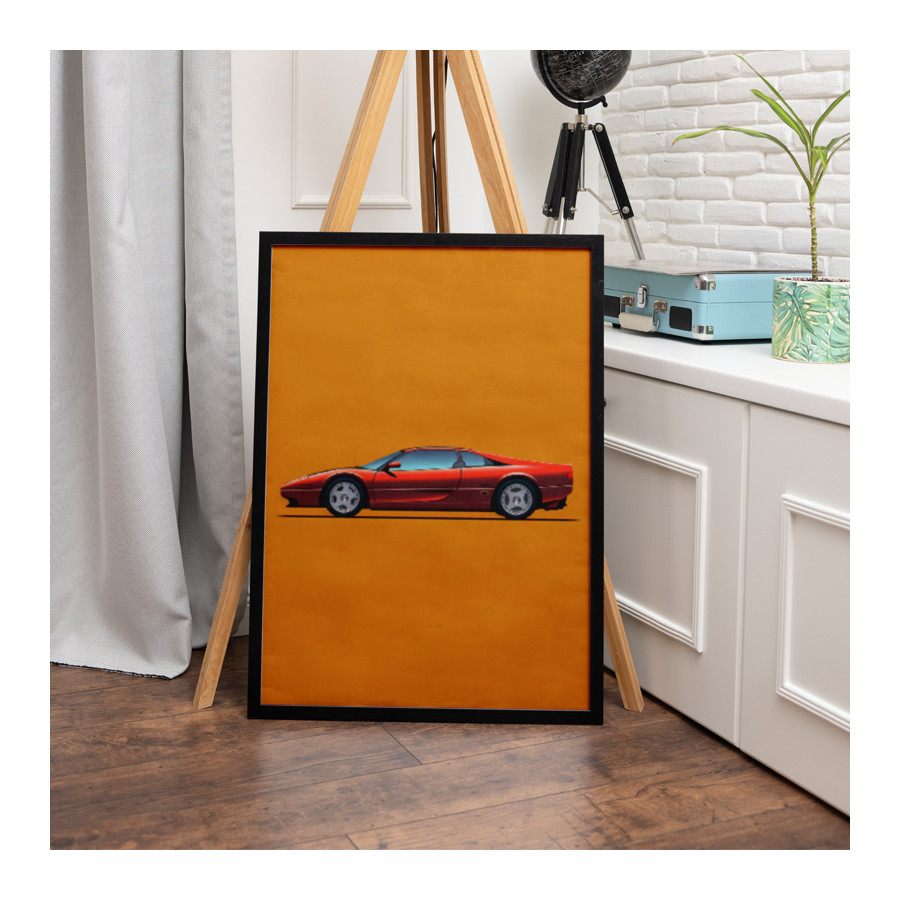 This wall frame showcases the legendary Bugatti EB 110 GT, equipped with a V12 engine and renowned for its avant-garde design and exceptional performance. Ideal for enhancing an office, living room, or a space dedicated to exceptional automobiles, it will elevate your area with elegance and character.