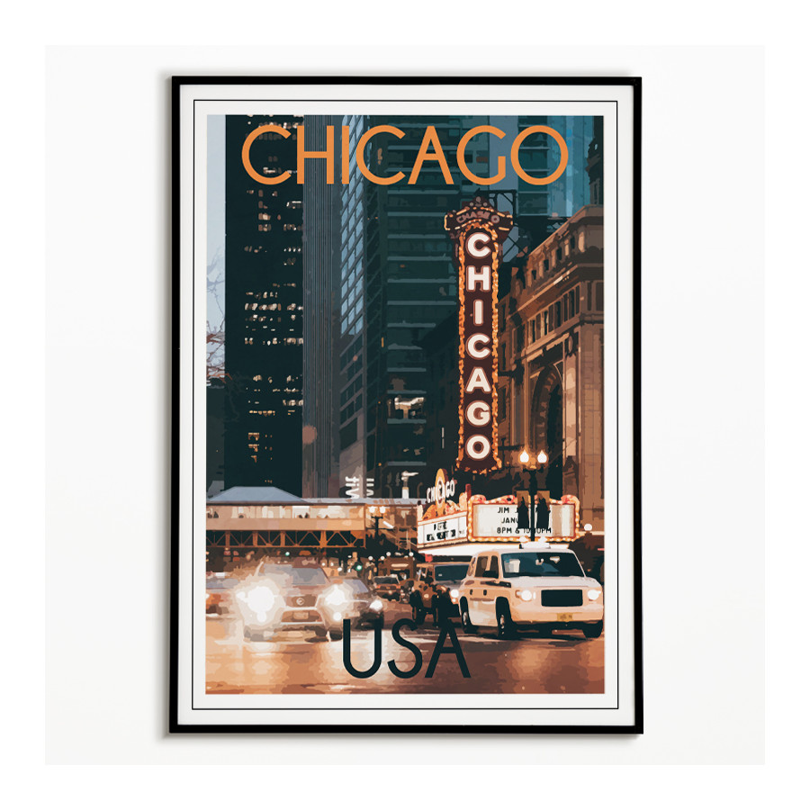 With this decorative frame representing the city of Chicago, you can bring a bit of the unique atmosphere of this captivating metropolis into your home and reminisce about your travel memories or dream of your next visit.