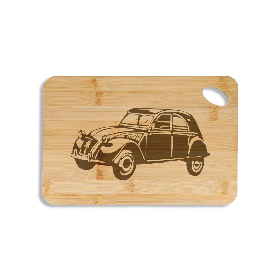 A vintage nod for enthusiasts of beautiful mechanics! This bamboo snack board highlights a mythical car with a fine engraving representing an iconic 2CV.