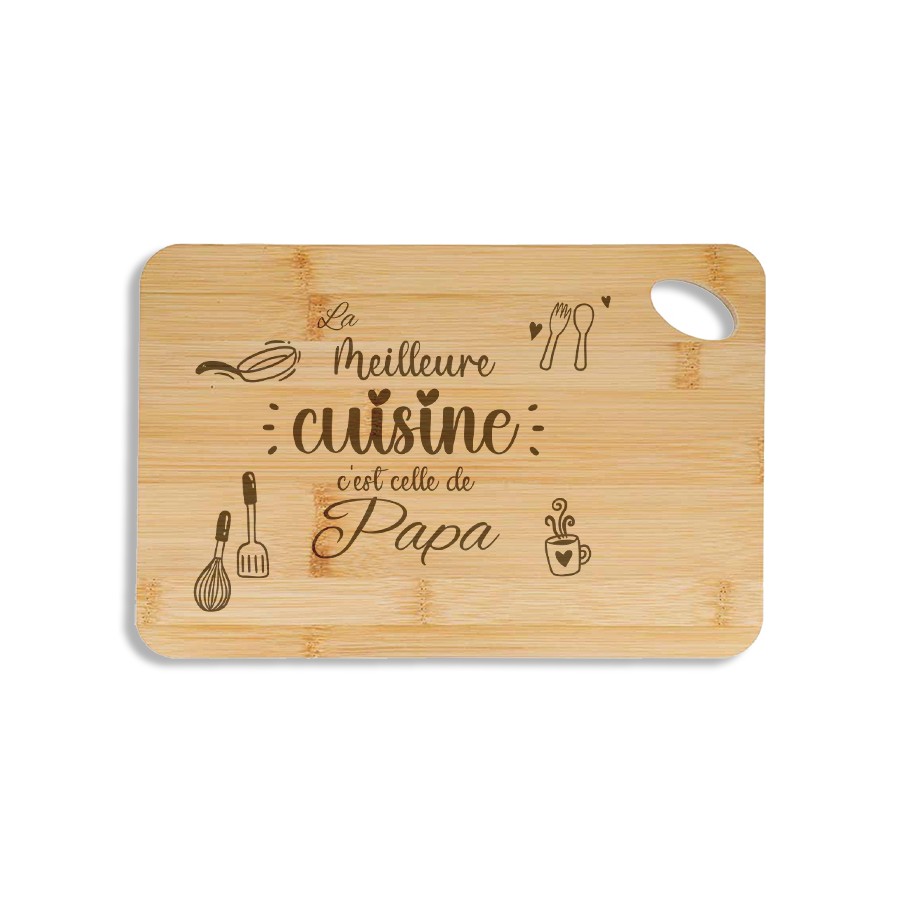 A fun and affectionate nod to the king of the kitchen: this bamboo appetizer board engraved with "The best cooking is Dad's" is perfect for showcasing his culinary talents.