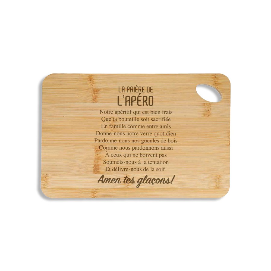 Discover our personalized aperitif board "The Prayer of the Aperitif", ideal for sharing convivial moments with friends or family. Bring a unique touch to your aperitifs with this practical and elegant accessory that will delight your guests.