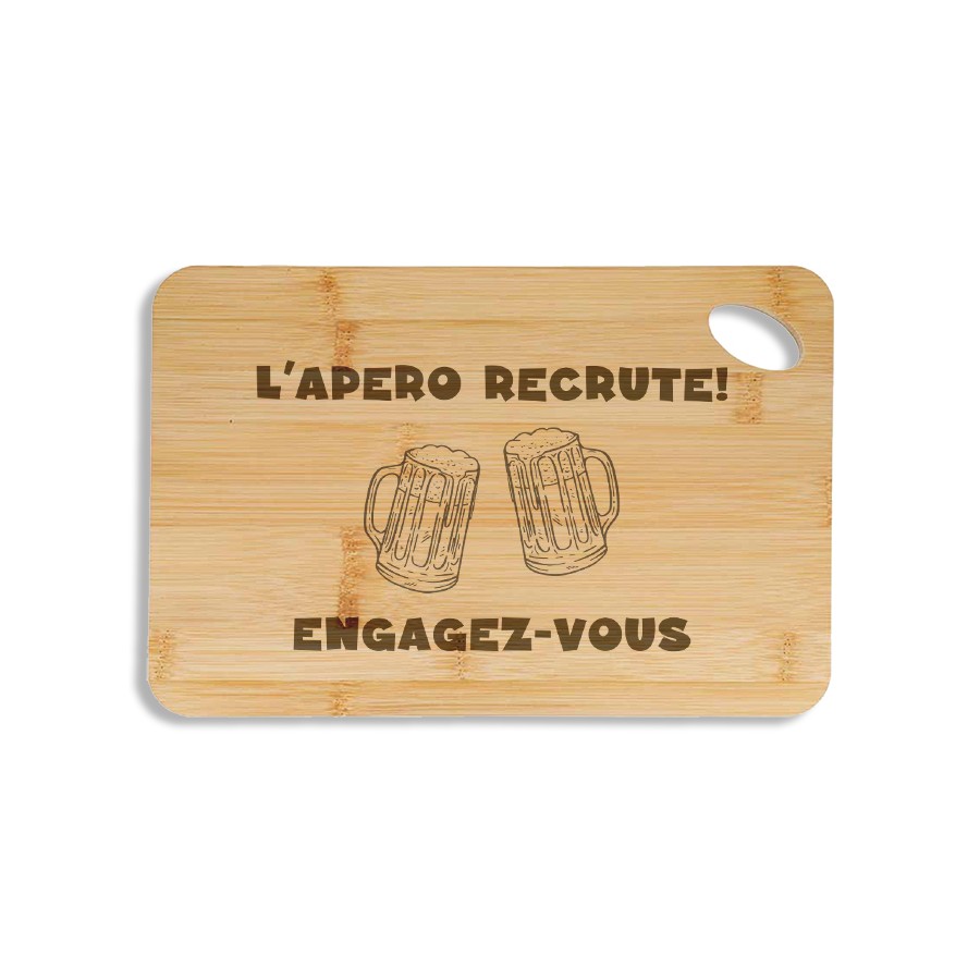 Its humorous design, laser-engraved, displays the inscription "The Aperitif is Recruiting! Get Involved", accompanied by two clinking beer mugs. Perfect for lovers of convivial moments.