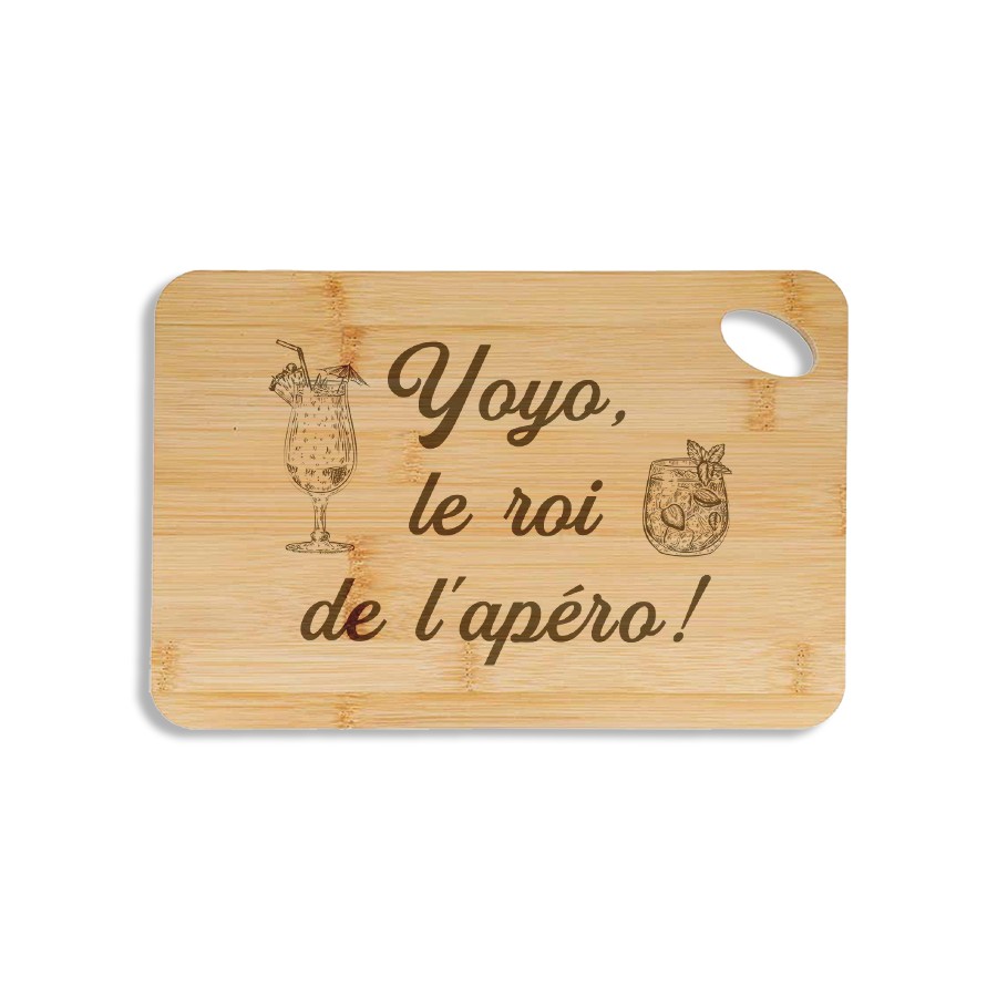Laser engraved, it features the inscription "[First Name], the king of snacks!", where the first name is fully customizable according to your choice. Accompanied by detailed illustrations of cocktails, it is perfect for those who enjoy convivial moments.