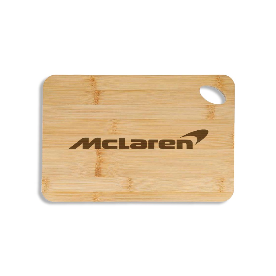 Set the mood at aperitif time with this bamboo serving board engraved with the famous McLaren logo!