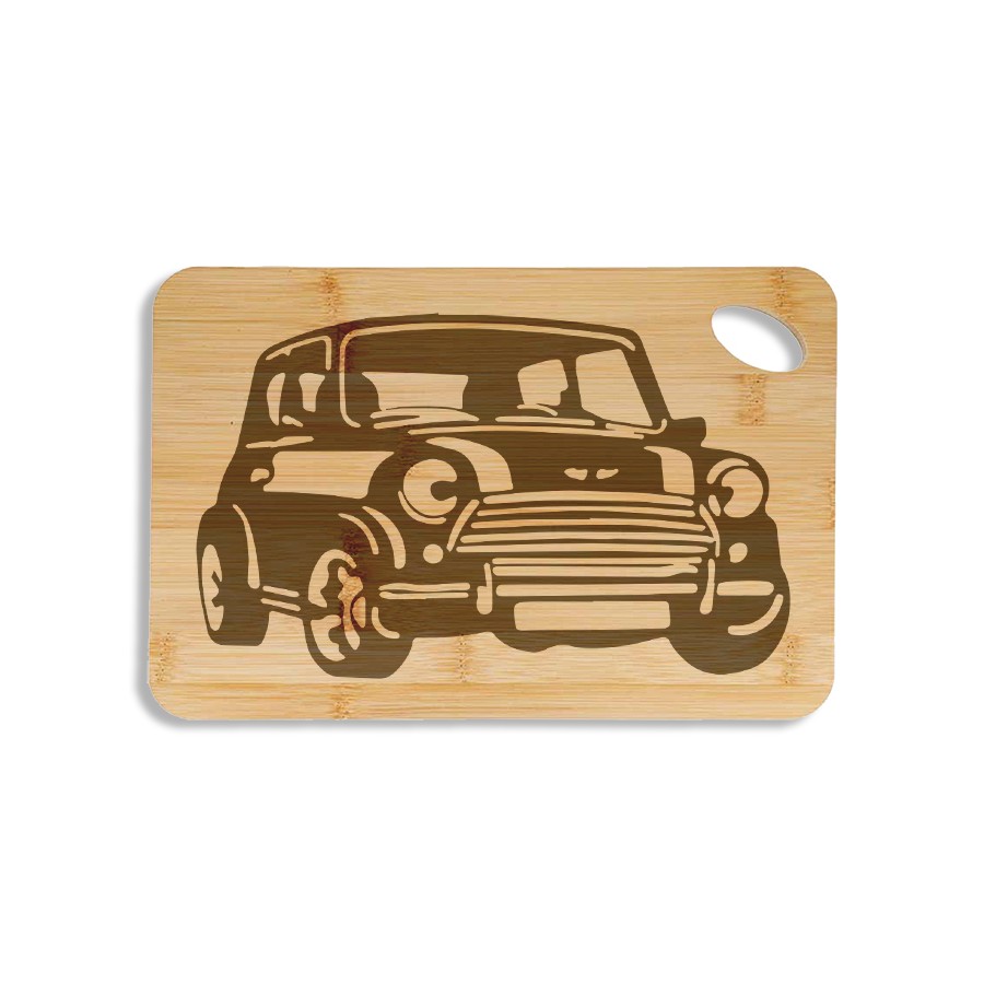 A retro touch for the appetizer! This bamboo appetizer board adorned with a classic Mini Cooper will delight all vintage car enthusiasts.