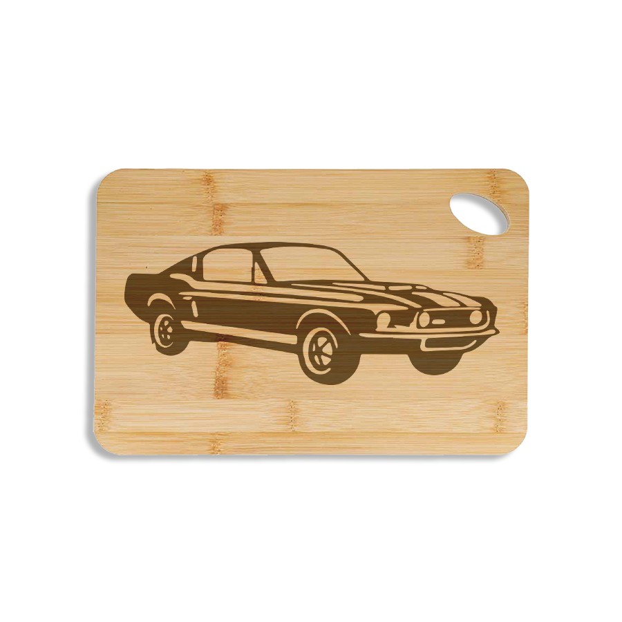 Roar with American style with this bamboo snack board engraved with a stunning vintage Ford Mustang.