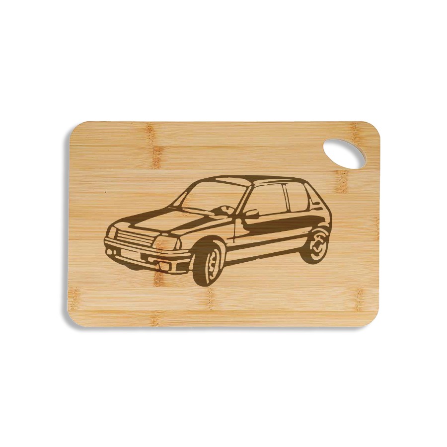 For fans of legendary cars, this bamboo cutting board or appetizer board engraved with a Peugeot 205 GTI is a perfect nod to car enthusiasts.