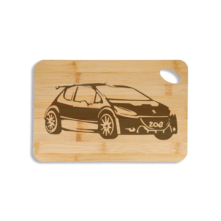 For rally fans and thrill-seekers, this bamboo cutting board or appetizer board engraved with a Peugeot 208 T16 is an accessory that is as practical as it is stylish!