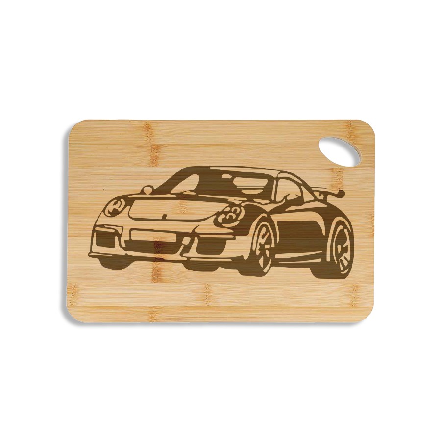 For sports car enthusiasts, this bamboo aperitif board engraved with a Porsche GT3 RS is the perfect accessory to combine conviviality and automotive style.