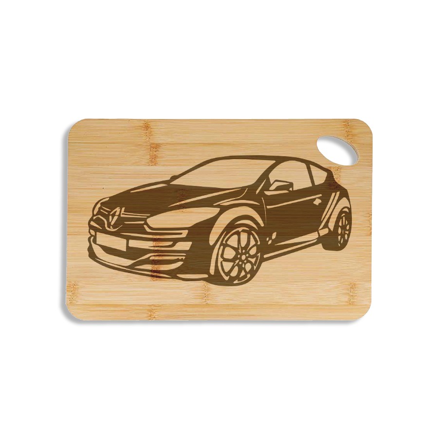 For thrill-seekers, this engraved bamboo snack board featuring a Renault Mégane 3 RS is a must-have!
