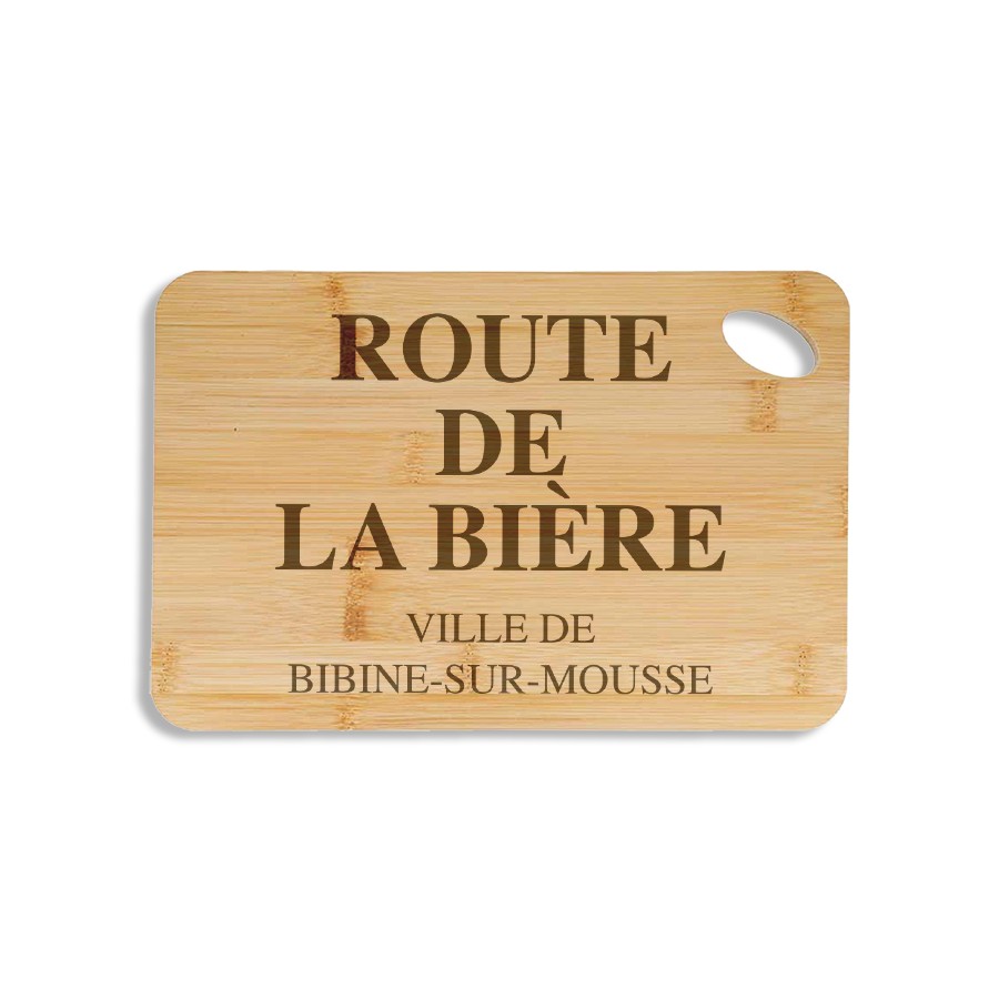 Embark on a 100% hoppy journey with this bamboo aperitif board engraved "Beer Route – City of Bibine-sur-Mousse".