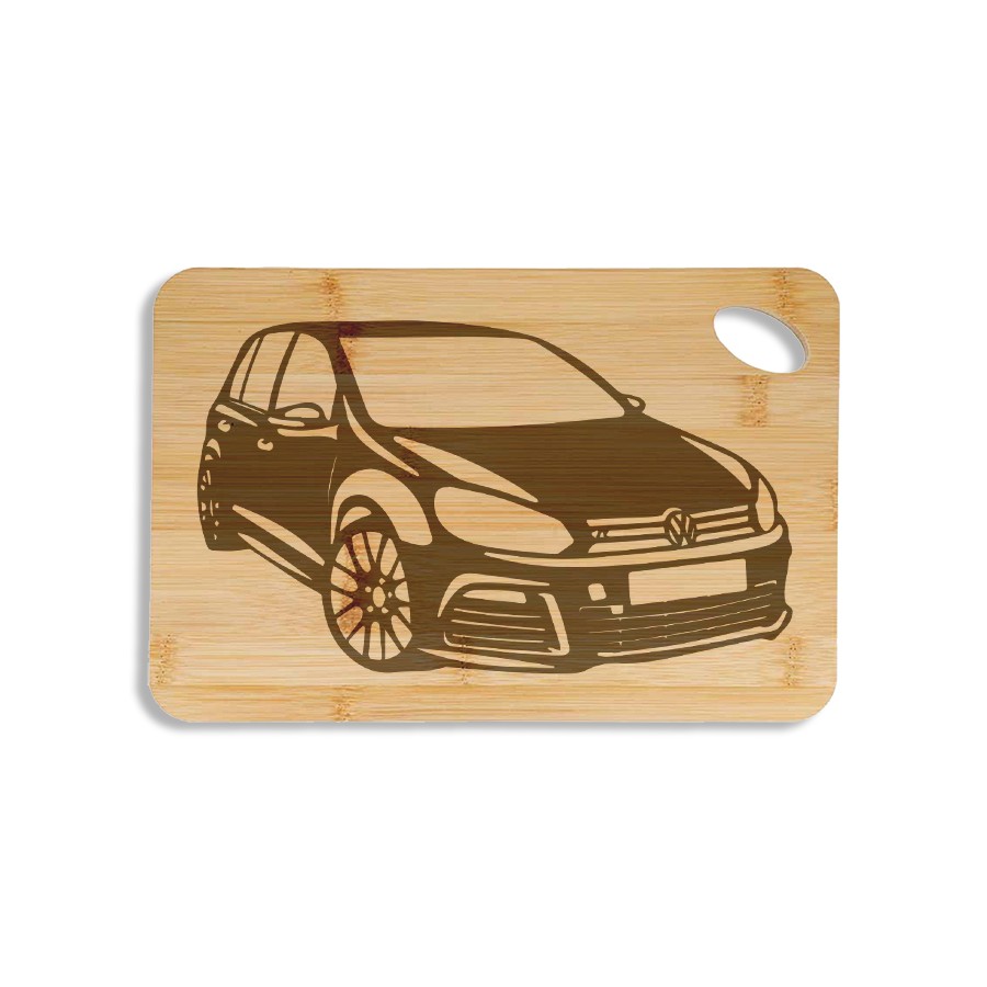 Roar your passion for sports cars with this bamboo apéro board engraved with the powerful Golf R!