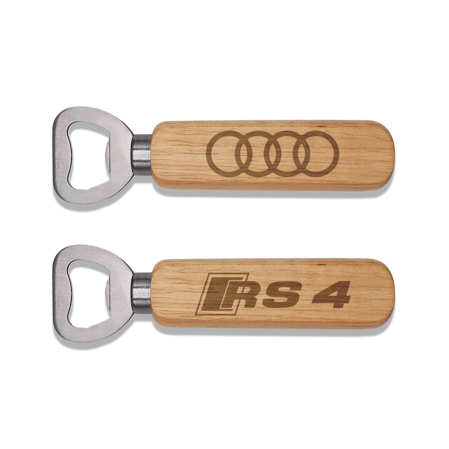 Discover this elegant bamboo bottle opener, a practical and refined accessory. Its natural bamboo design gives it a warm and authentic look, perfect for accompanying your moments of conviviality. Precisely engraved on both sides, it proudly displays the Audi RS4 logo, a symbol of quality and passion. The sturdy metal tip ensures easy and efficient opening of all your bottles. Whether for an Audi enthusiast or a lover of unique design, this bottle opener is the perfect gift.