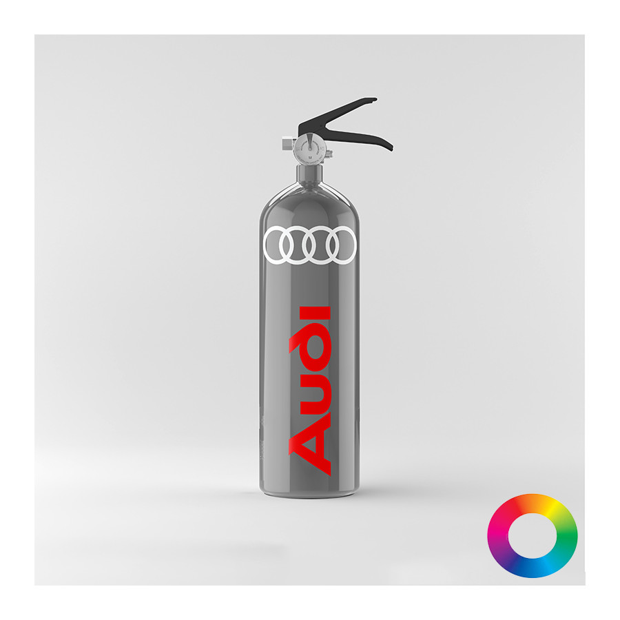Discover our customizable Audi decorative fire extinguisher, a unique accessory that combines safety and style for your interior. Ideal for brand enthusiasts, it adds an original touch while ensuring your protection.