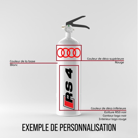 Discover our customizable Audi RS4 decorative fire extinguisher, a unique accessory that combines safety and style for your interior. Ideal for car enthusiasts, it adds a distinctive touch while ensuring your protection.