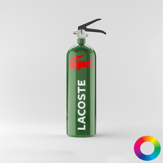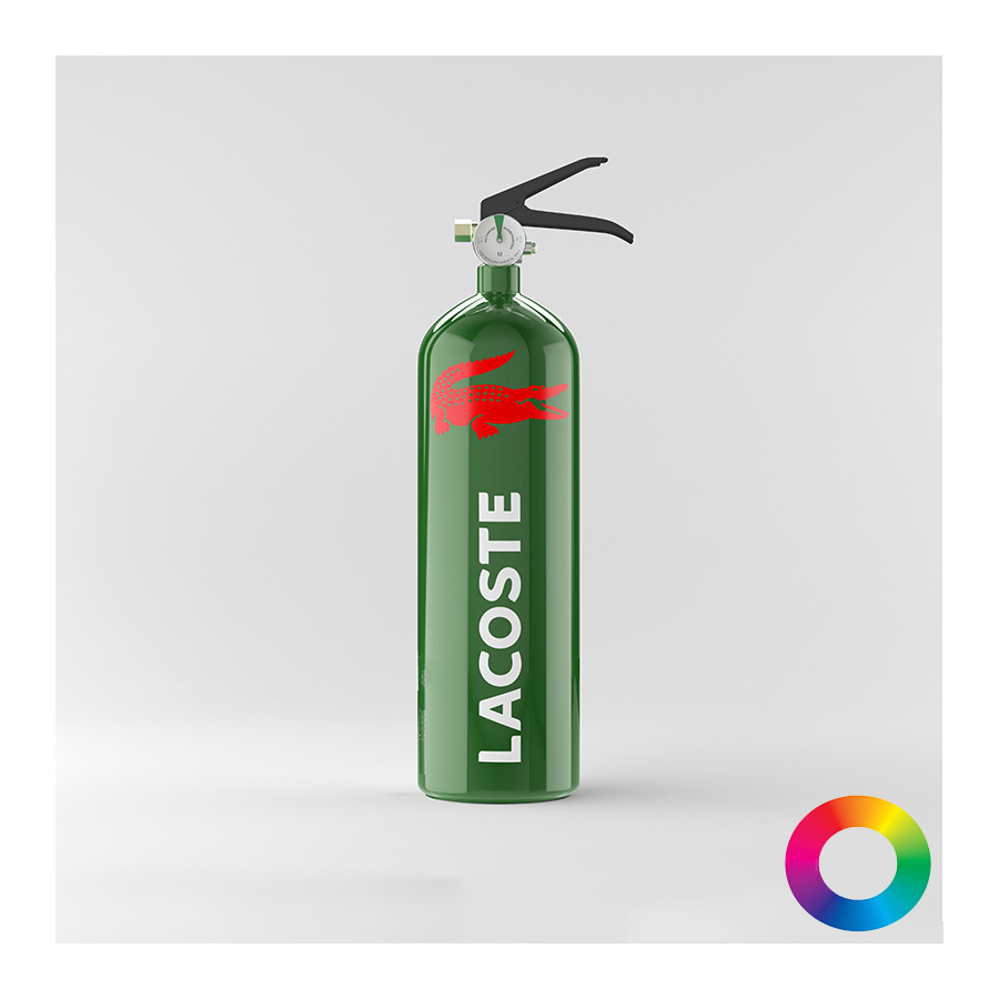 Add a unique touch to your interior with this customizable Lacoste decorative fire extinguisher, combining safety and style. Perfect for design enthusiasts, it easily fits into any space while providing essential protection.