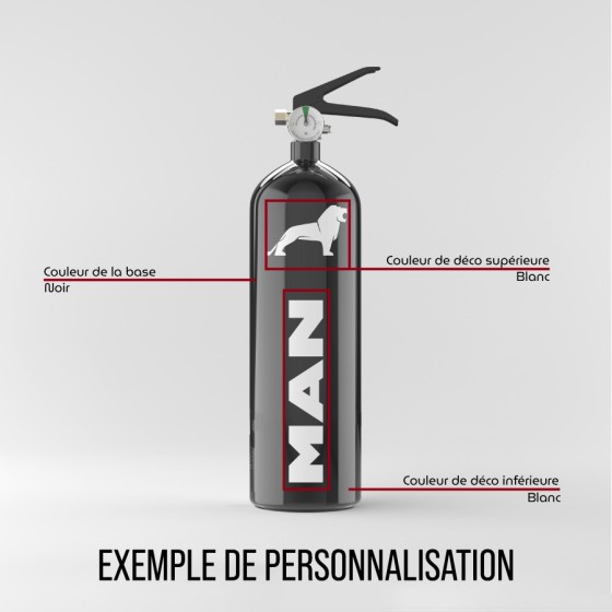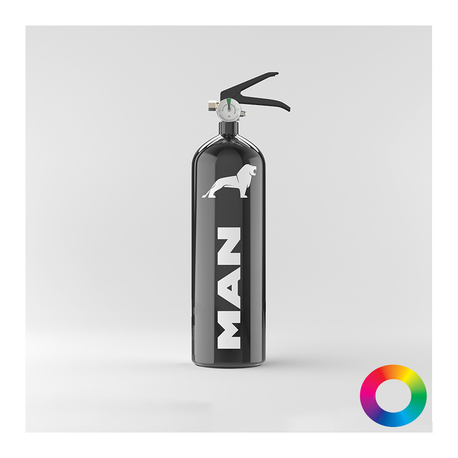 The MAN model embodies robustness and efficiency in the transportation industry. The decorative fire extinguisher features a design inspired by the dynamic aesthetics and performance associated with the MAN brand.
