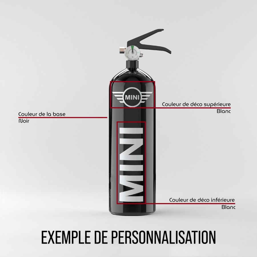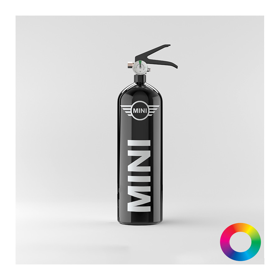 The Mini model embodies charm and compactness. The decorative fire extinguisher features a design inspired by iconic lines and the distinctive character associated with the Mini brand.