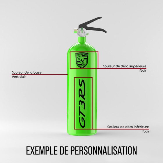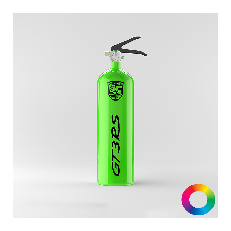 Discover our customizable decorative fire extinguisher inspired by the Porsche GT3 RS, a unique accessory that combines safety and style to enhance your interior while ensuring your peace of mind.