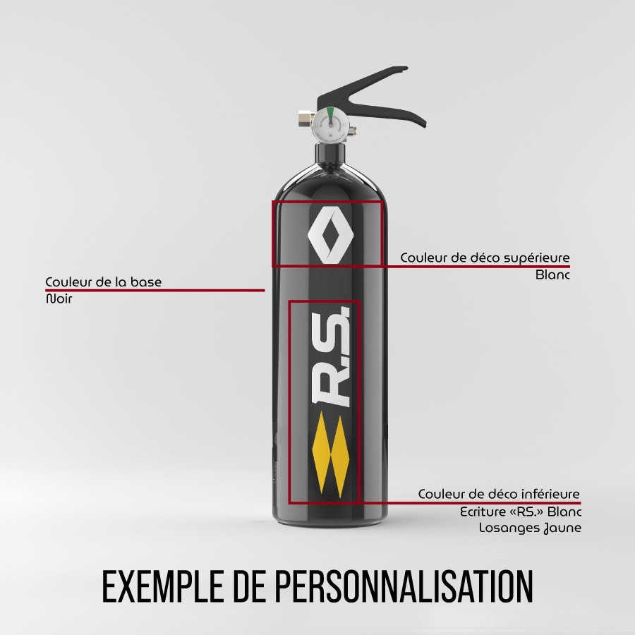 Discover our customizable Renault RS decorative fire extinguisher, a unique accessory that combines safety and style for your interior, while adding an original touch to your decor.