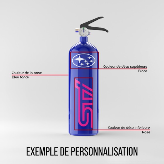 Every detail is meticulously crafted to harmoniously integrate into your space. The customization of the base color, upper and lower decoration allows you to create a fire extinguisher that reflects the distinctive character of the Subaru STI.
