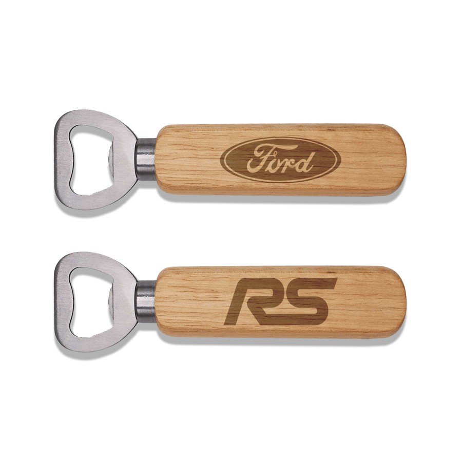 Discover this elegant bamboo bottle opener, a practical and refined accessory. Its natural bamboo design gives it a warm and authentic look, perfect for accompanying your moments of conviviality. Precisely engraved on both sides, it proudly displays the Ford RS logo, a symbol of quality and passion. The sturdy metal tip ensures easy and efficient opening of all your bottles. Whether for a Ford enthusiast or a lover of unique design, this bottle opener is the perfect gift.