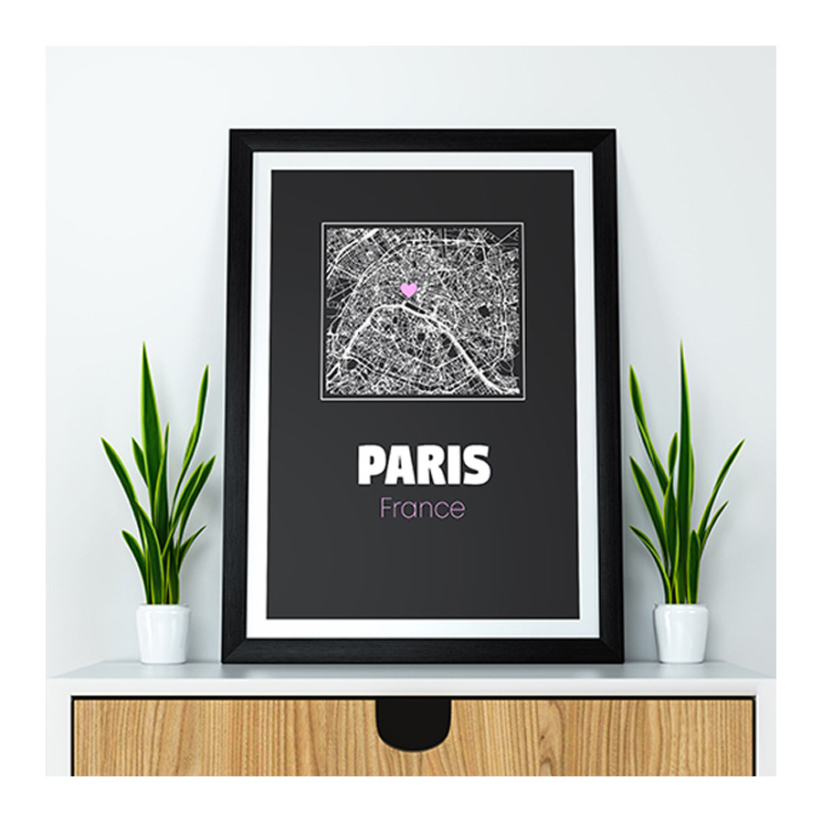 Discover our customizable frame "Your City" in 30x40cm format, perfect for showcasing your memories and adding a unique touch to your interior decor.