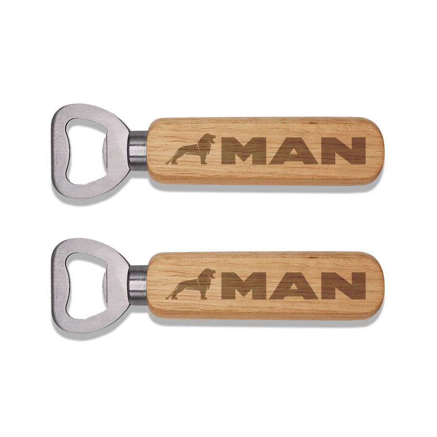 Discover this elegant bamboo bottle opener, a practical and refined accessory. Its natural bamboo design gives it a warm and authentic look, perfect for accompanying your moments of conviviality. Precisely engraved on both sides, it proudly displays the Man logo, a symbol of quality and passion. The sturdy metal tip ensures easy and efficient opening of all your bottles. Whether for a Man enthusiast or a lover of unique design, this bottle opener is the perfect gift.