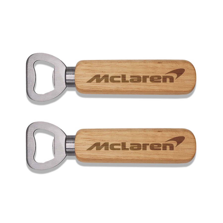 Discover this elegant bamboo bottle opener, a practical and refined accessory. Its natural bamboo design gives it a warm and authentic look, perfect for accompanying your moments of conviviality. Precisely engraved on both sides, it proudly displays the Mclaren logo, a symbol of quality and passion. The sturdy metal tip ensures easy and efficient opening of all your bottles. Whether for a Mclaren enthusiast or a lover of unique design, this bottle opener is the perfect gift.