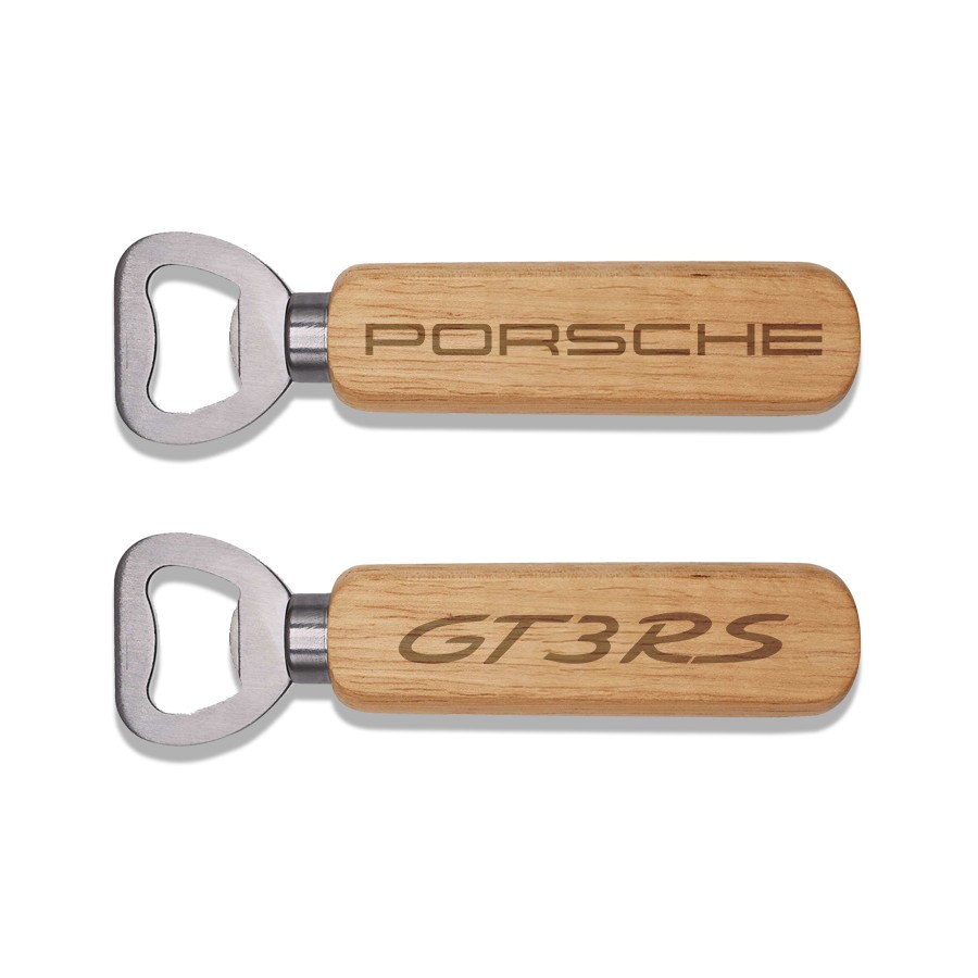 Discover this elegant bamboo bottle opener, a practical and refined accessory. Its natural bamboo design gives it a warm and authentic look, perfect for accompanying your moments of conviviality. Precisely engraved on both sides, it proudly displays the Porsche GT3 RS logo, a symbol of quality and passion. The sturdy metal tip ensures easy and efficient opening of all your bottles. Whether for a Porsche enthusiast or a lover of unique design, this bottle opener is the perfect gift.