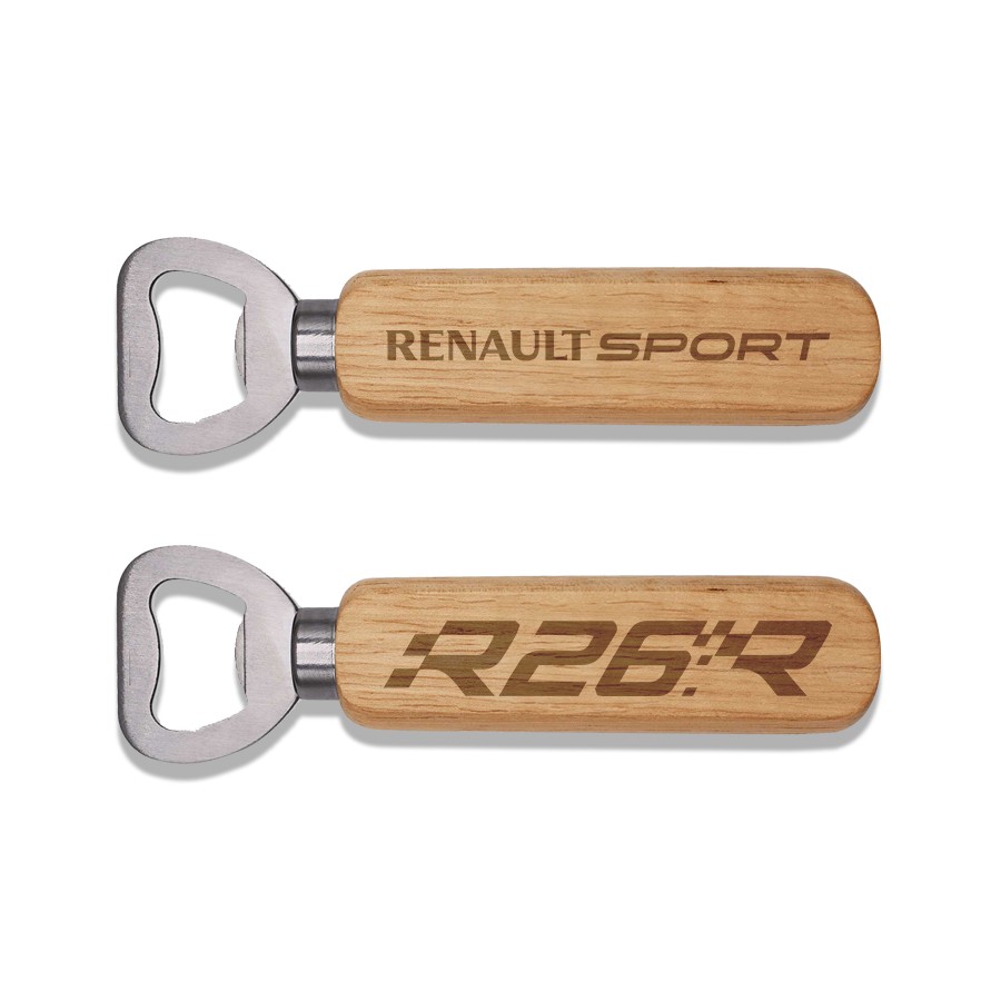 Discover this elegant bamboo bottle opener, a practical and refined accessory. Its natural bamboo design gives it a warm and authentic look, perfect for accompanying your moments of conviviality. Precisely engraved on both sides, it proudly displays the Renault Sport R26R logo, a symbol of quality and passion. The sturdy metal tip ensures easy and efficient opening of all your bottles. Whether for a Renault enthusiast or a lover of unique design, this bottle opener is the perfect gift.