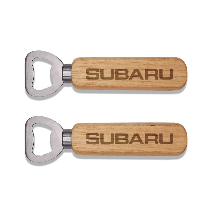 Discover this elegant bamboo bottle opener, a practical and refined accessory. Its natural bamboo design gives it a warm and authentic look, perfect for accompanying your moments of conviviality. Precisely engraved on both sides, it proudly displays the Subaru logo, a symbol of quality and passion. The sturdy metal tip ensures easy and efficient opening of all your bottles. Whether for a Subaru enthusiast or a lover of unique design, this bottle opener is the perfect gift.
