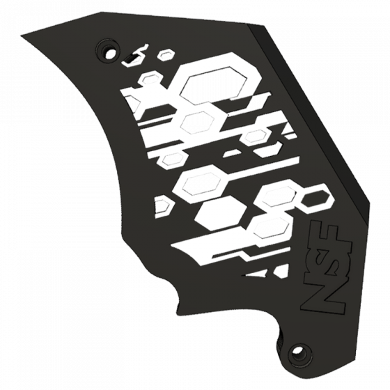 Our AM6 HEXAGONE sprocket covers are made using 3D printing. Once the printing is complete, the 3D sprocket covers NSF Grafics go through a post-processing phase to receive a protective UV varnish layer.