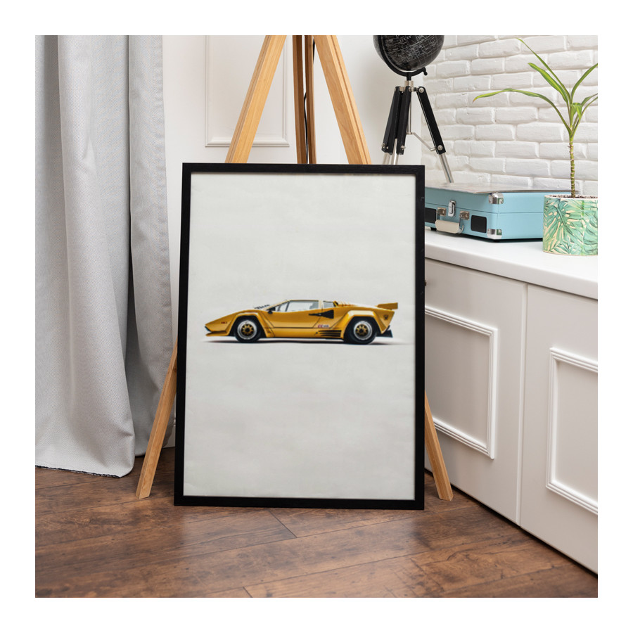 Buy this 30 x 40 cm frame featuring a 1970 Lamborghini Countach now to bring a retro and luxurious touch to your space!