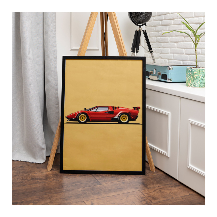 Buy this 30 x 40 cm frame featuring a 1970 Lamborghini Countach now to bring a retro and luxurious touch to your space!