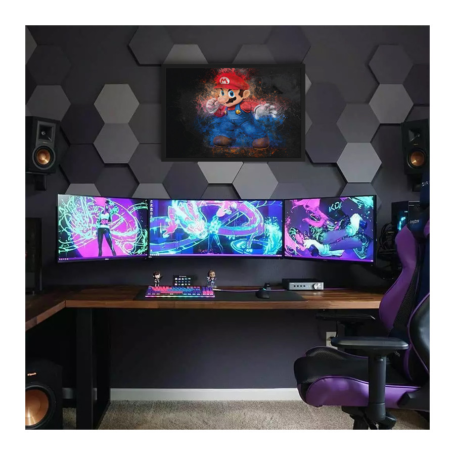Dive into the magical world of gaming with our 30x40 cm decorative frame featuring the "Mario Bros" design. This piece is an artistic celebration of the iconic plumber, mushrooms, and thrilling adventures in the Mushroom Kingdom. Add a playful and retro touch to your interior with this unique decorative frame.