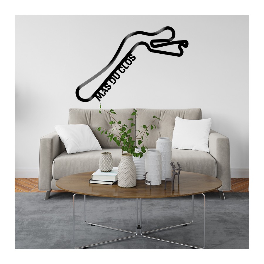 We offer this wall decoration featuring the Mas du Clos Circuit, laser-cut from 3mm plexiglass. Located in Saint-Avit-de-Tardes in the Creuse region of France, this historic circuit is known for its highly technical layout of around 3.1 km, following the natural terrain with significant elevation changes, fast sequences and a wide variety of corners, delivering a unique challenge for motorsport enthusiasts.