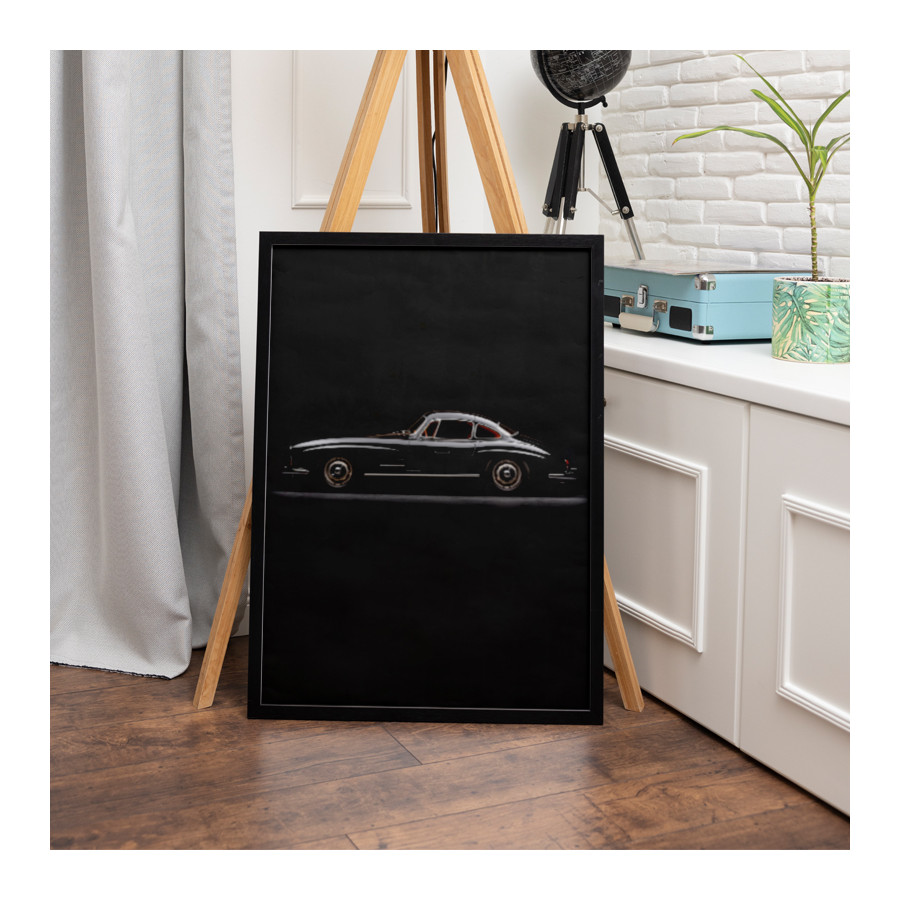 The frame, measuring 30 x 40 cm, features a high-quality image of the Mercedes-Benz 300 SL, capturing the essence of this automotive icon. Available in several finishes, it adds a touch of sophistication that harmoniously integrates with various interior decor styles.