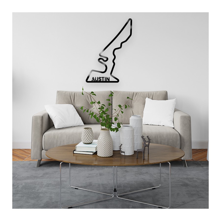 We offer you this wall decoration representing the Austin Moto GP Circuit, made from 3mm laser-cut plexiglass. This circuit, located in the United States, is famous for its demanding layout and thrilling races, providing a captivating spectacle for Moto GP fans.