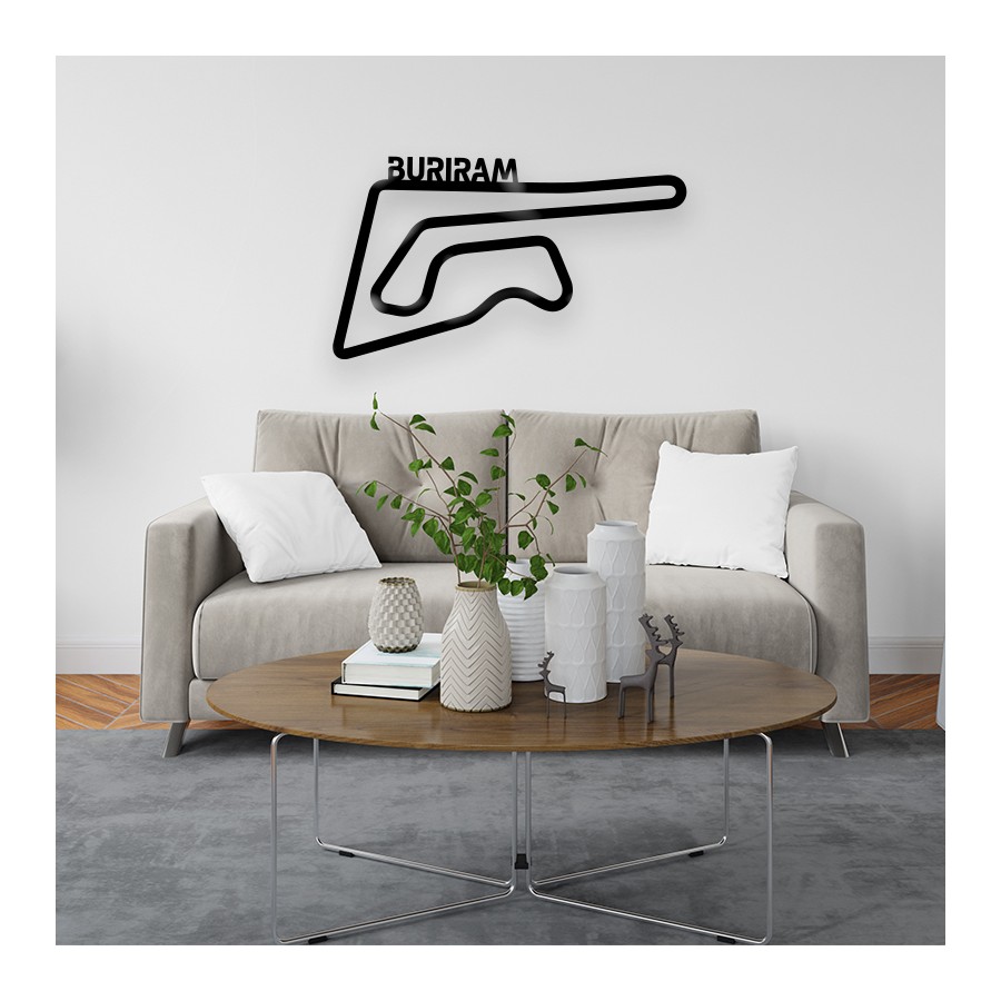 We offer you this wall decoration representing the Moto GP Circuit of Buriram, made from 3mm laser-cut plexiglass. Located in Thailand, this circuit is renowned for its modern layout and thrilling races, providing a captivating spectacle for Moto GP enthusiasts.