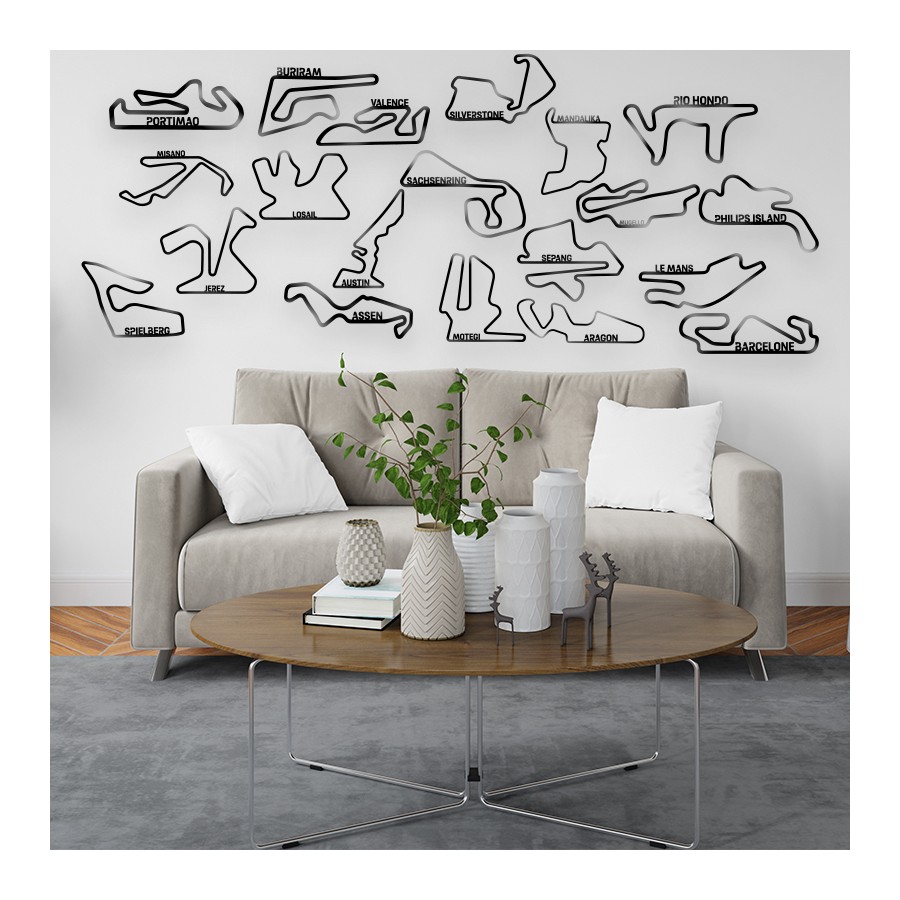 Embark on an exciting journey through the most iconic circuits of Moto GP with our exclusive pack featuring 20 wall decorations representing each circuit of the season. Each decoration is made by laser cutting from 3 mm plexiglass, offering superior quality and an elegant finish.