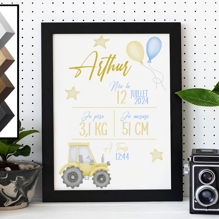 Discover our personalized Tractor birth frame, a unique keepsake to celebrate the arrival of your little one. This frame will add an original touch to your child's room while preserving unforgettable moments.
