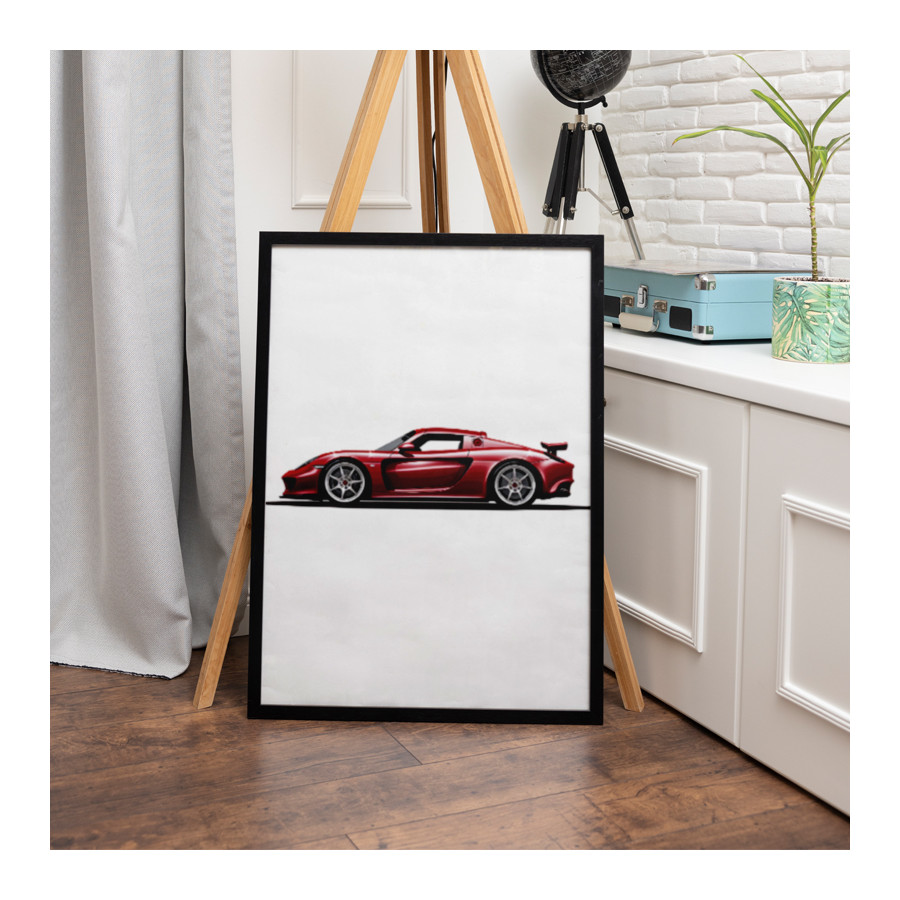 The frame, measuring 30 x 40 cm, showcases a high-quality image of the Porsche Carrera GT 2000, capturing the essence of this iconic sports car. Available in several finishes, it adds a touch of modernity that perfectly fits various interior decor styles.