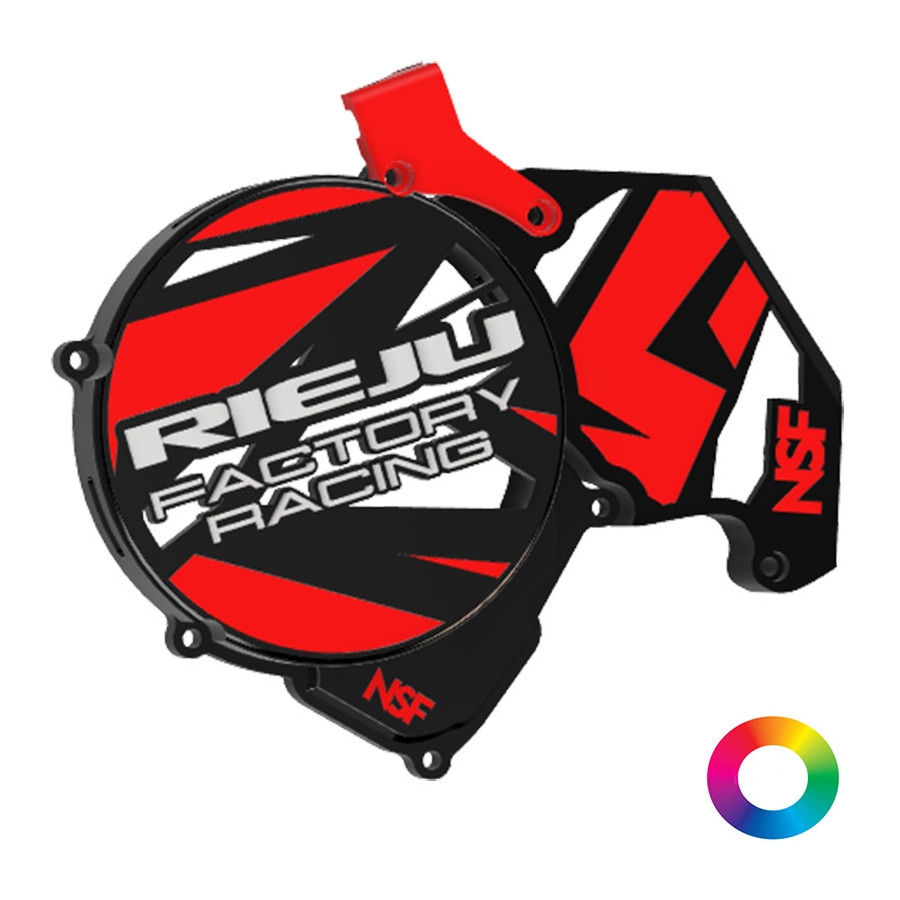 Discover the Complete Ignition Cover Rieju Factory Racing, a semi-customizable accessory for your AM6, which combines style and optimal protection for your engine, while enhancing the aesthetics of your vehicle.
