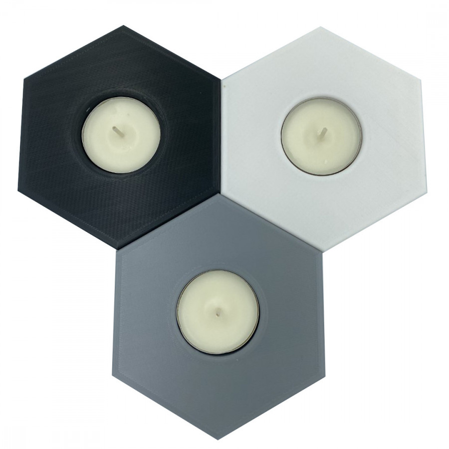 Our low Hexagon table candle holders are made using 3D printing. Once the printing is complete, the NSF GRAFICS candle holders go through the post-processing phase to receive a layer of satin varnish to protect them.