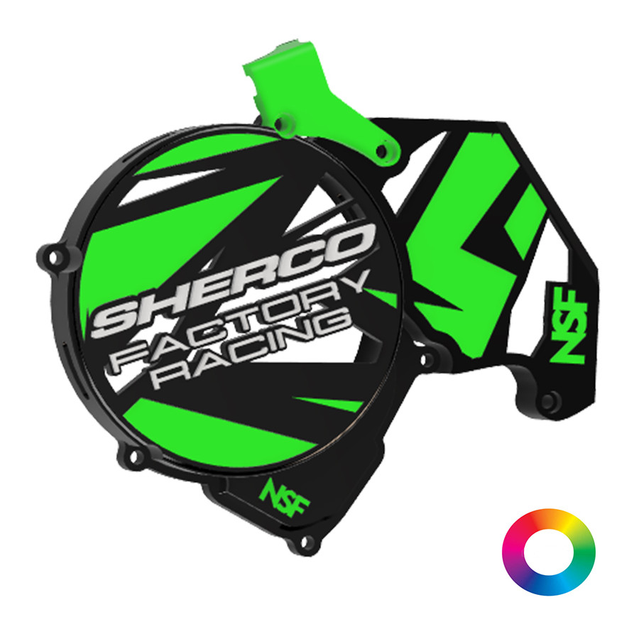 Discover the Sherco Factory Racing Fully Customizable AM6 Ignition Cover, perfect for protecting your engine while adding a personalized touch to your bike. Enjoy a neat finish and easy installation for an unmatched racing look.